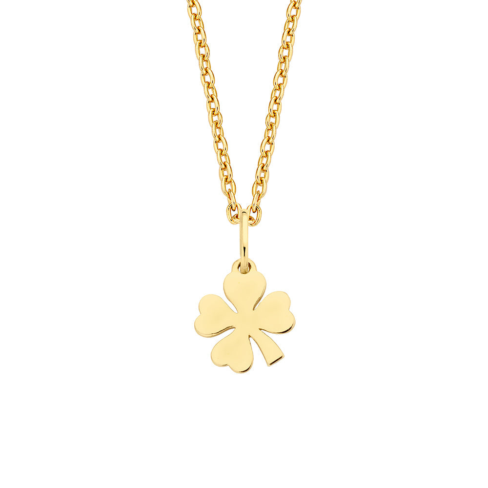 Inspired by the sophistication of nature itself, this 14k gold necklace showcases a delicate clover pendant of 5 mm. It has a length of 43 cm can be extended up to 5 cm (2,5+2,5 cm). Embrace the beauty of nature with this stunning yellow gold necklace, perfect for adding a touch of timeless grace to any look.